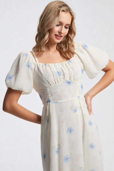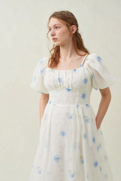 MAXI DRESS SMUDGE BLUE FLOWER