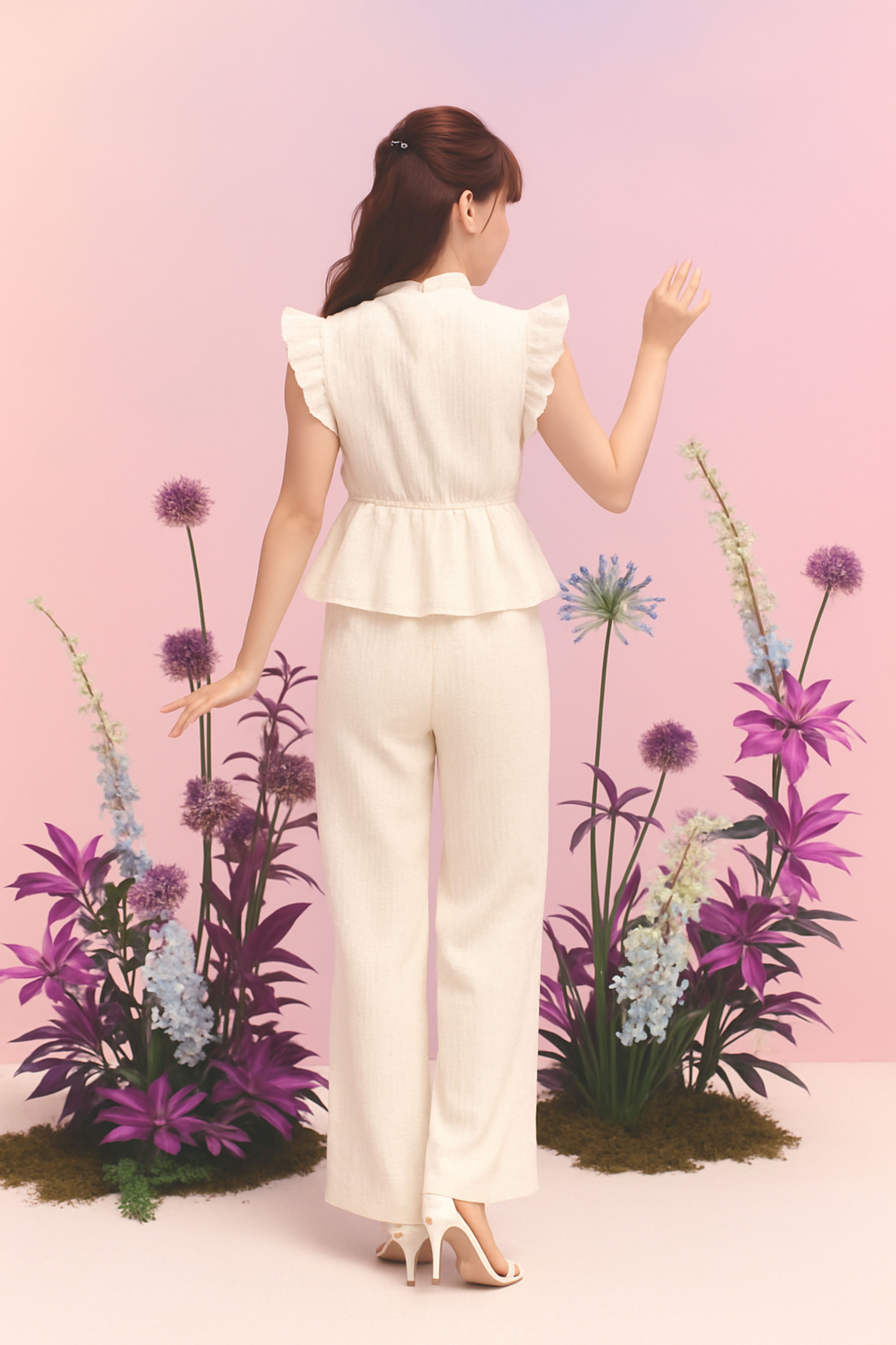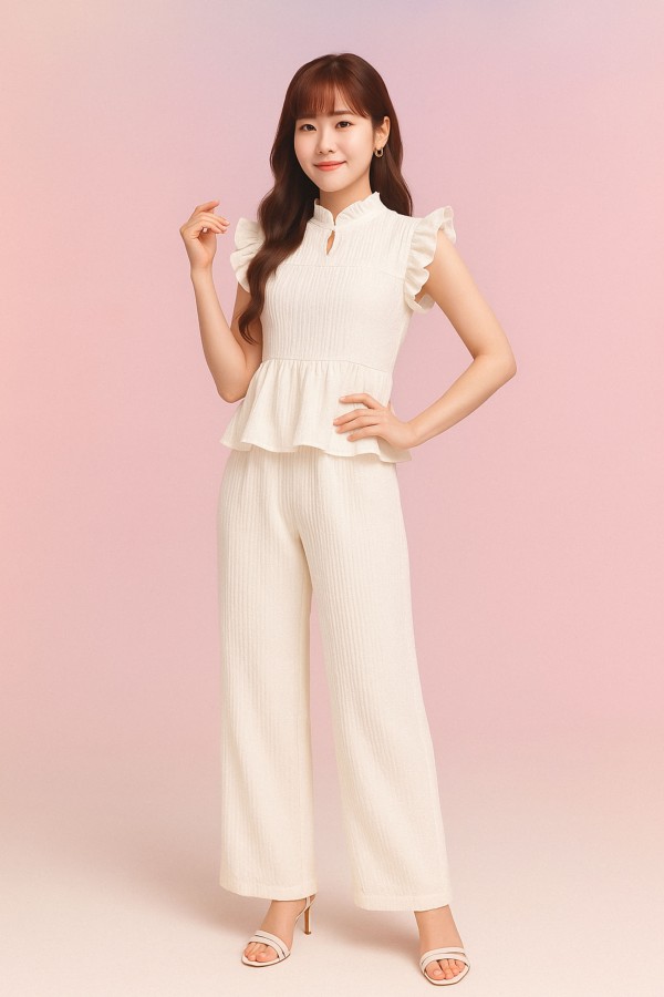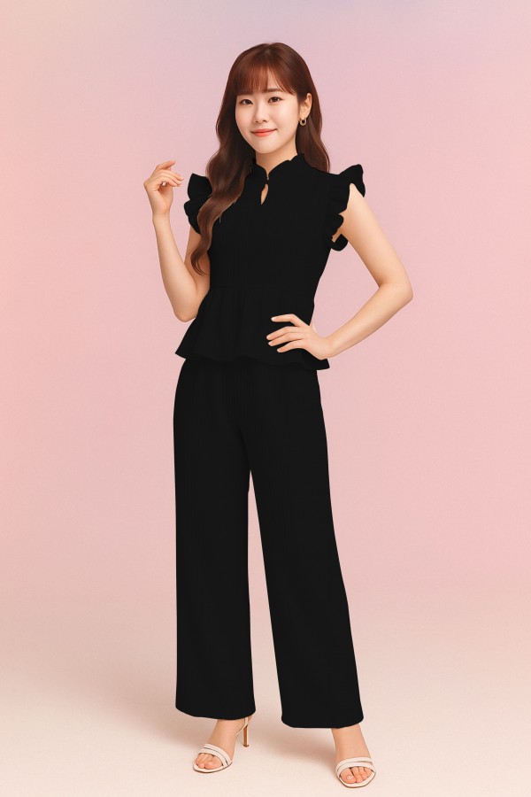 SET EMBOSED TOP FRILL SLEEVE + CULLOTES
